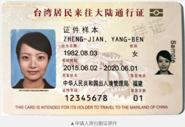 若代领人为台胞,则身份证改成代领人本人台胞证