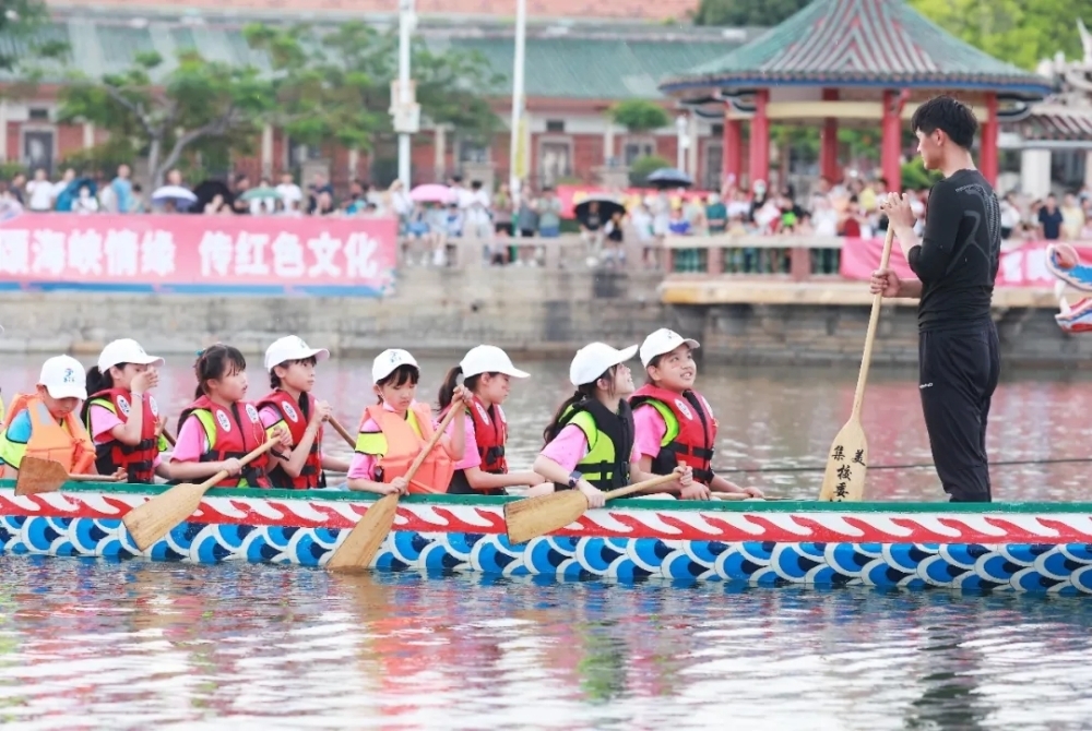 两岸小学生共同体验划龙舟