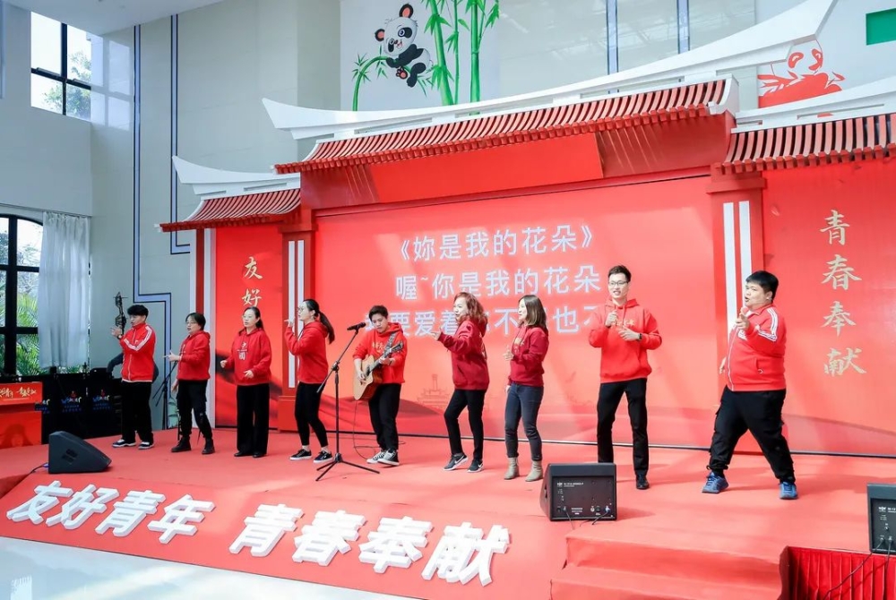 “你是我的花朵,我要爱着你 不眠也不休……要和你同心,两岸一起努力,愿所有的美好,都扎根在我们的心底……”启动仪式上,一群身着红衣的两岸青年在活动现场唱响了这首动听的歌曲。他们不仅是欢快的歌者,还是苔芯志愿服务队的台胞志愿者。