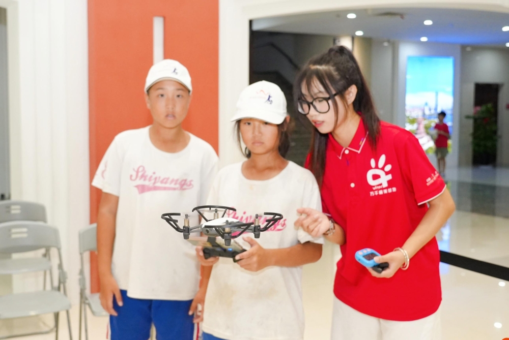 两岸青少年在厦门(集美)闽台研学旅行基地总部的万千极美营地学习无人机知识,制作模型;在万千研学导师的指导下学习飞行技巧,掌握无人机飞行的技能。
