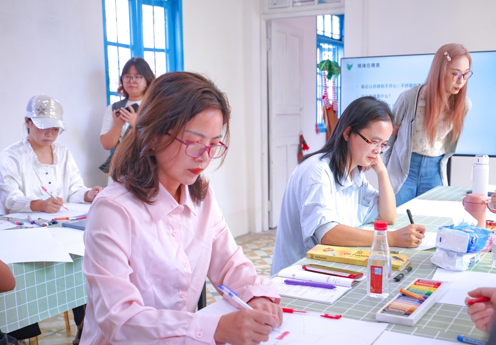 为让情绪的模样清晰可见,蔓蔓老师带大家绘制一份独特的“情绪地图”。在空白的人物轮廓上,用彩色蜡笔画出自己当时的情绪:愤怒可能是心中一团灼热的红色火焰,焦虑或许是胃里一团纠缠的灰色线条……当抽象的情绪变成具象的图案或色彩,家长们恍然大悟,那些被忽视和压抑的情绪终将以身体为出口,发出不同的信号。