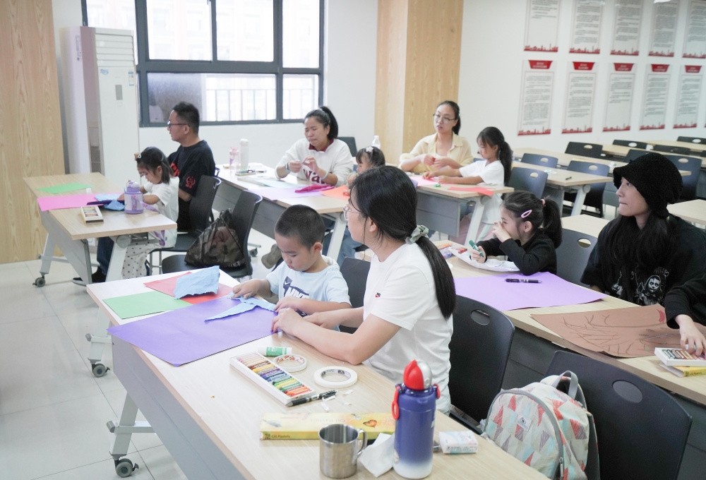 如果说绘本是“看见情绪”,那接下来的创作就是“种下改变”。在拼贴创作环节,每个亲子家庭都默契配合,用彩纸和真心创作独一无二的“能量语言树”。