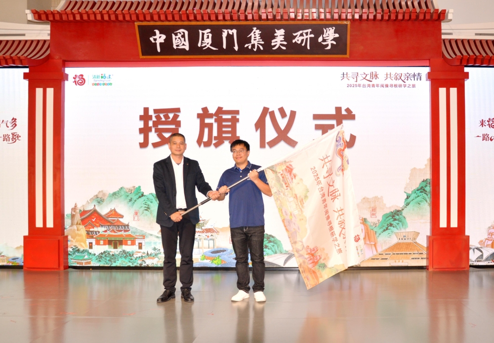“3,2,1!启动!”在两岸嘉宾、台青营员的共同见证下,2025年台湾青年闽豫寻根研学之旅正式启动!本次研习营营员代表随后从领导嘉宾手中接过营旗。